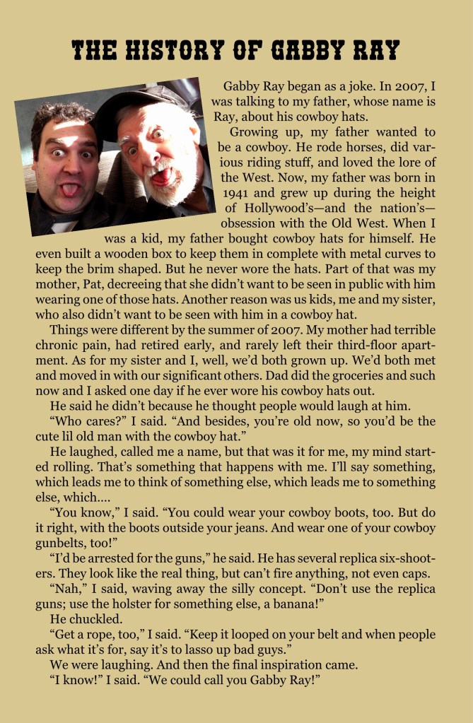 Gabby Ray has lived in my family since 2007. It began as a joke but I’ve used the character as an example for years in my class when I teach Photoshop, InDesign, etc. Last year, I did a project with the students and actually did the project with them. Writing, drawing, all of this comic book.