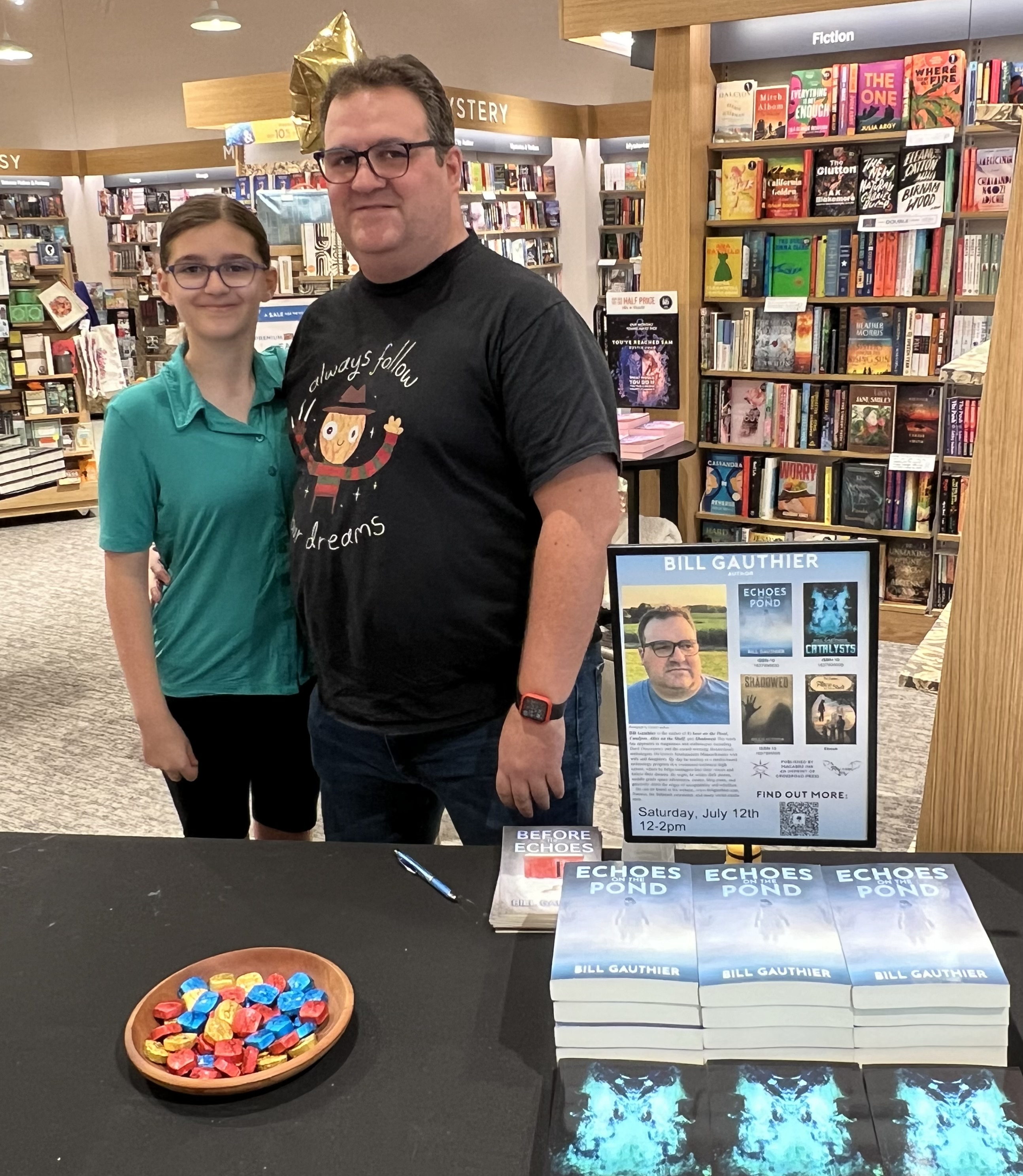 The way that it was better than Open House, though is that I was able to talk about my books. I frickin’ love Echoes on the Pond. I think it’s a really good story that is weird and scary and heartwarming and all the things that I am. I want people to read the thing. I also want to continue writing and continue publishing. So in that way, doing the book signing was fun.
