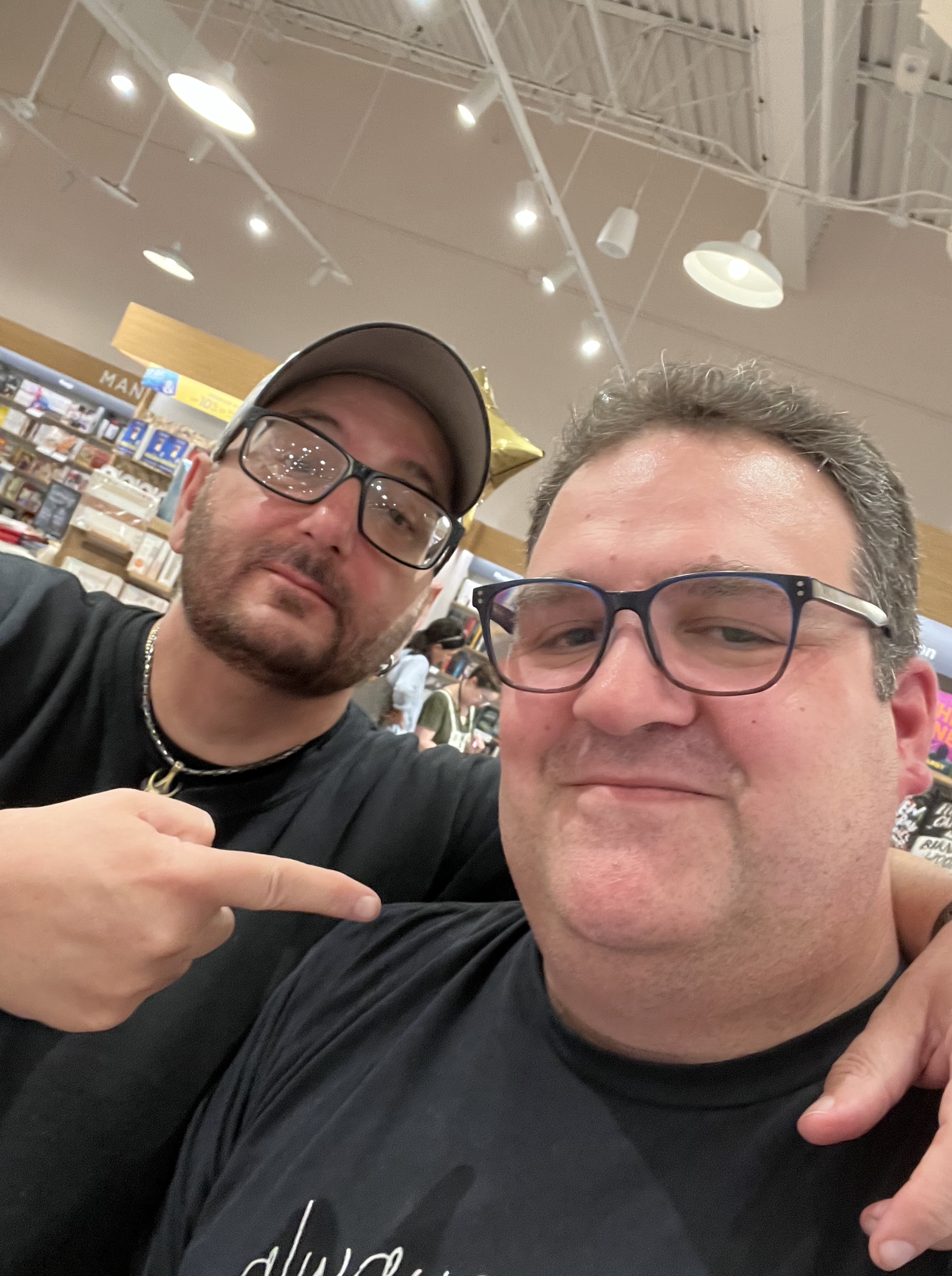 This gentleman here is Greg F. Gifune. He is a writer who lives near the bookstore and is a Big Deal in the horror/dark fiction genres. He also published some of my earliest stories, providing notes and feedback on “Stray Cats” that acted like a free writing school. When he was working as an editor for Delirium Books, he reached out and asked if I had a novella I could submit for their new novella line. That’s where Shadowed came to be. There’s more to the story in terms of that novella but I can tell it another time. Greg’s part was to reach out, accept, and encourage. We’ve corresponded since 1998 so it was a thrill to finally meet him in-person and get to thank him.