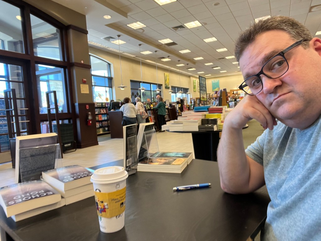 We’d hardly started when a young woman approached the table. She shyly asked if I was the author of this book, and she pointed to Echoes on the Pond. I said I was. And the strangest thing happened…she mildly fangirled! She’d read the novel and loved it. Her aunt had read it and enjoyed it and passed it to her. She’d read it and loved it and gave it to her mother, who wasn’t much of a reader, and she loved it. She had a copy in her car because she was bringing it to her boyfriend’s mother to read. I was already humbled and shocked, when she went further. In one of her high school classes, they’d been asked about books they’d read and enjoyed and a classmate of hers head mentioned Echoes on the Pond and me!