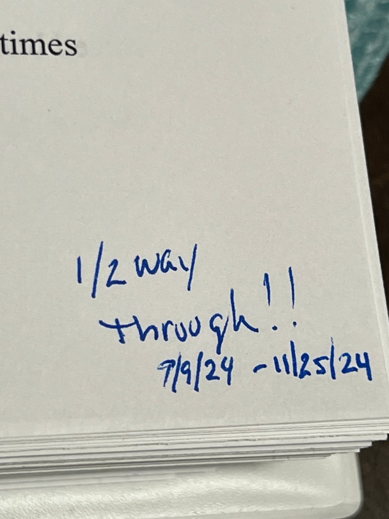 I’d left this little note on September 9th to let me know when I’d gotten to the halfway point. I decided to mark the date when I got there.