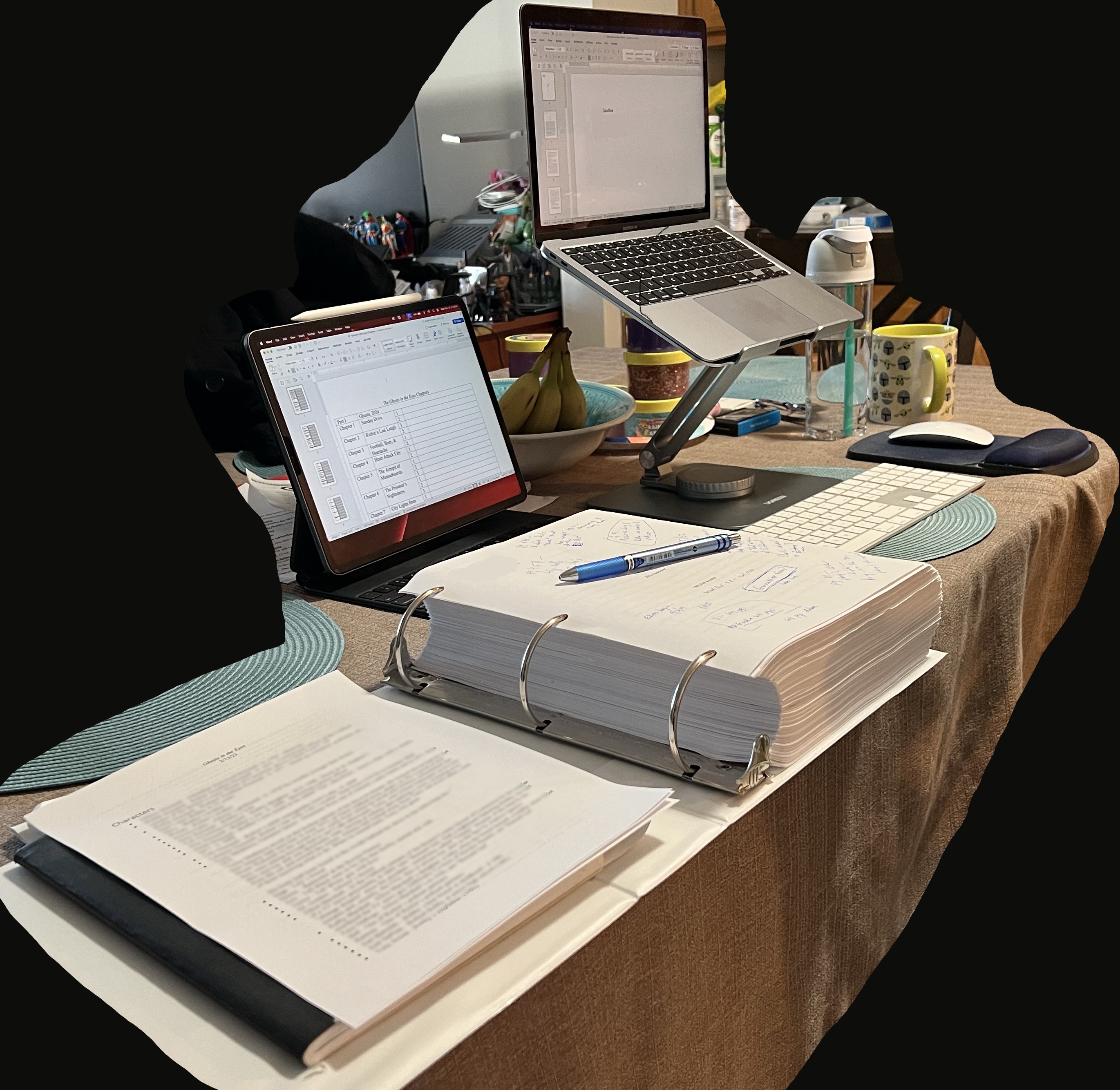 Some of that other work included updating the tiers on Patreon and beginning the Daily Progress posts on Patreon. These posts will go into a little more detail about the work done that day than my weekly progress here, but that’s all right. I’ve had fun with them. The above picture was taken for one of them.