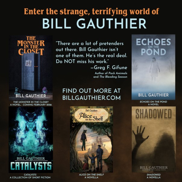 Preorder my novel The Monster in the Closet or grab my novel Echoes on the Pond, my collection Catalysts, or my novellas Alice on the Shelf and Shadowed if you haven’t already. And if you’ve read them, please consider leaving a review on Amazon or Goodreads, and wherever else books are sold and reviewed.